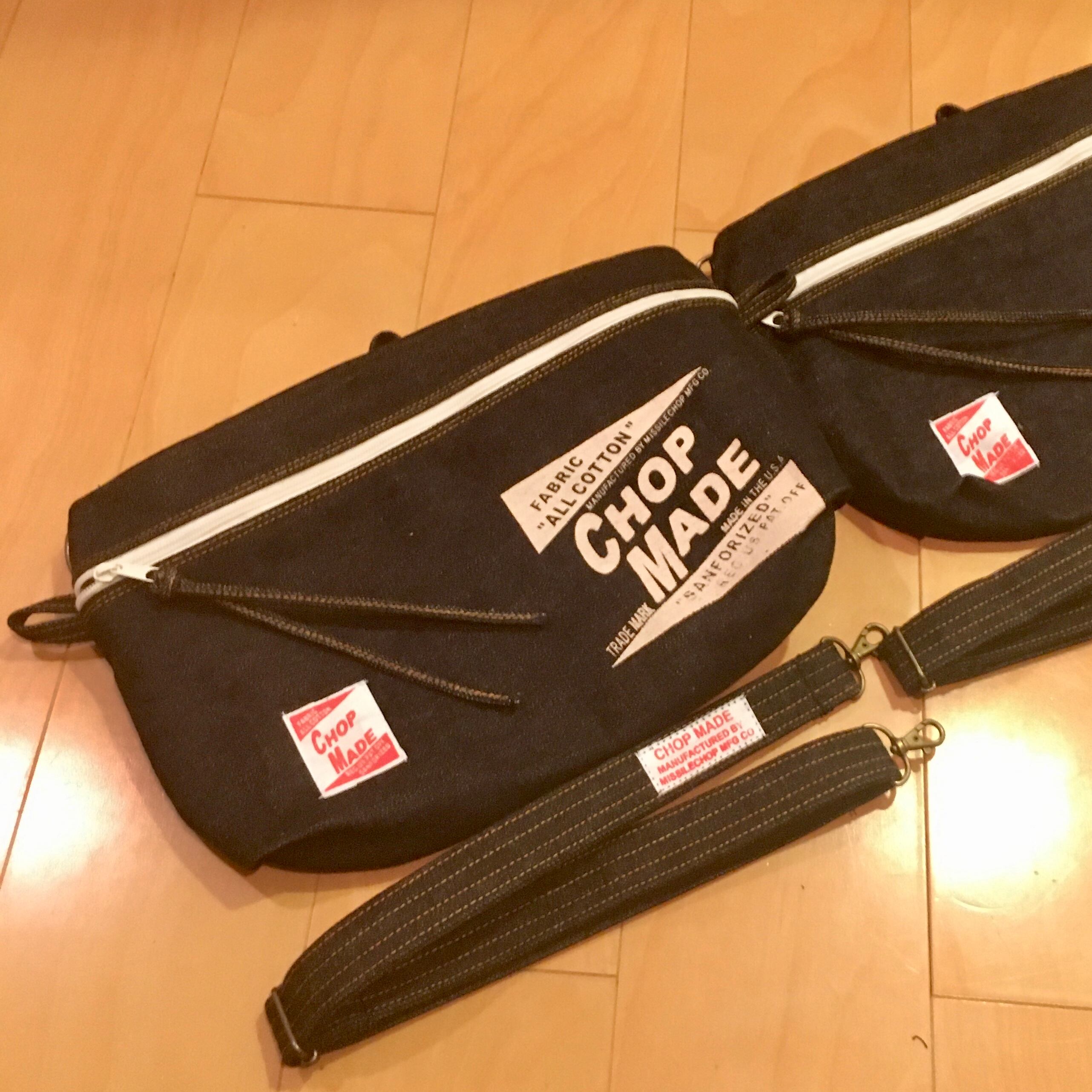 ボディの生地に使用しているのは岡山産15ozセルビッチデニム、未洗の状態で固くやや厚手。色落ちは絶対に良いですよ‼︎今回のボディバッグは容量タップリな大きめタイプ、後ろ側ポケット、内側ポケット、引っ掛けは合計4つ付き。