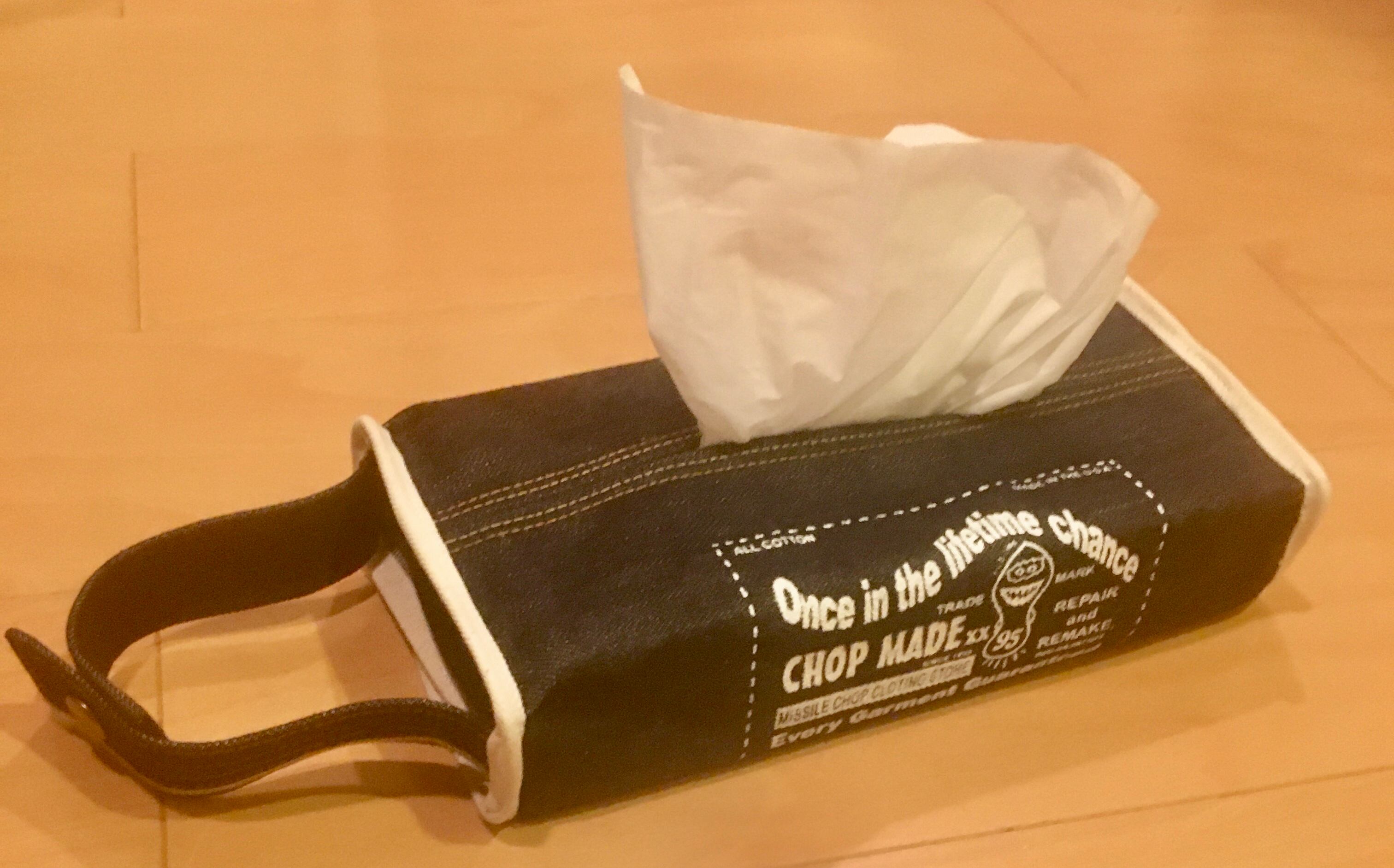 ボディ生地に岡山産14oz未洗いセルビッチデニムを使用したとっても色落ちが期待できるティッシュケースです‼︎縁取りにはビンテージパンツに使われるヘリンボーンスレーキを使用しオールド感を表現してます。またスナップボタン付きのセルビッチベルトが付いているので車などにぶら下げてもお使い頂けます♪ 汚れてもガンガン洗えるのも魅力ですよ‼︎