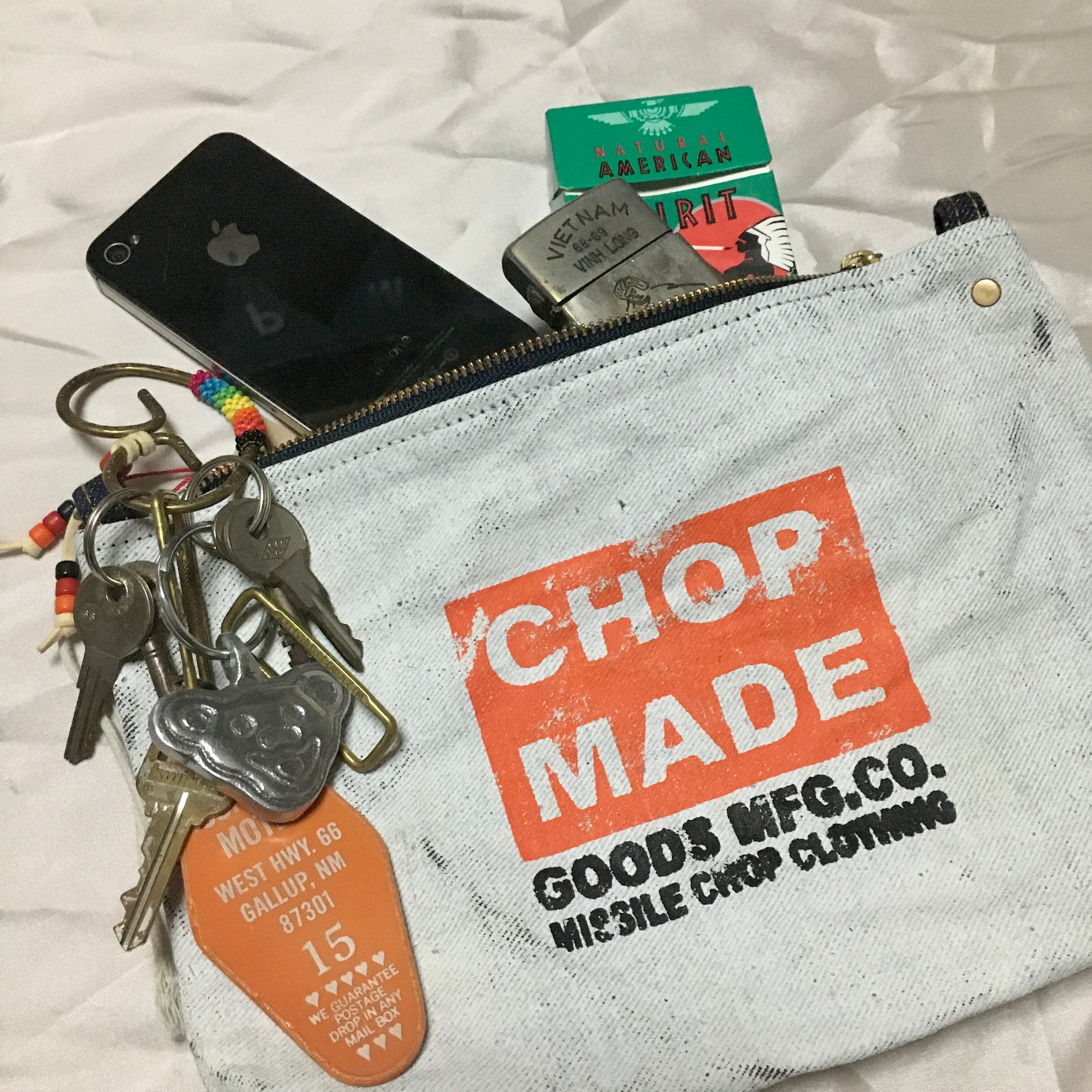 使い込んだ風合いと色落ちしたビンテージ感のあるボディ生地がポイントなデニムポーチ。裏側はブルーデニムでコチラも使い込むほどに色落ちを楽しめます!